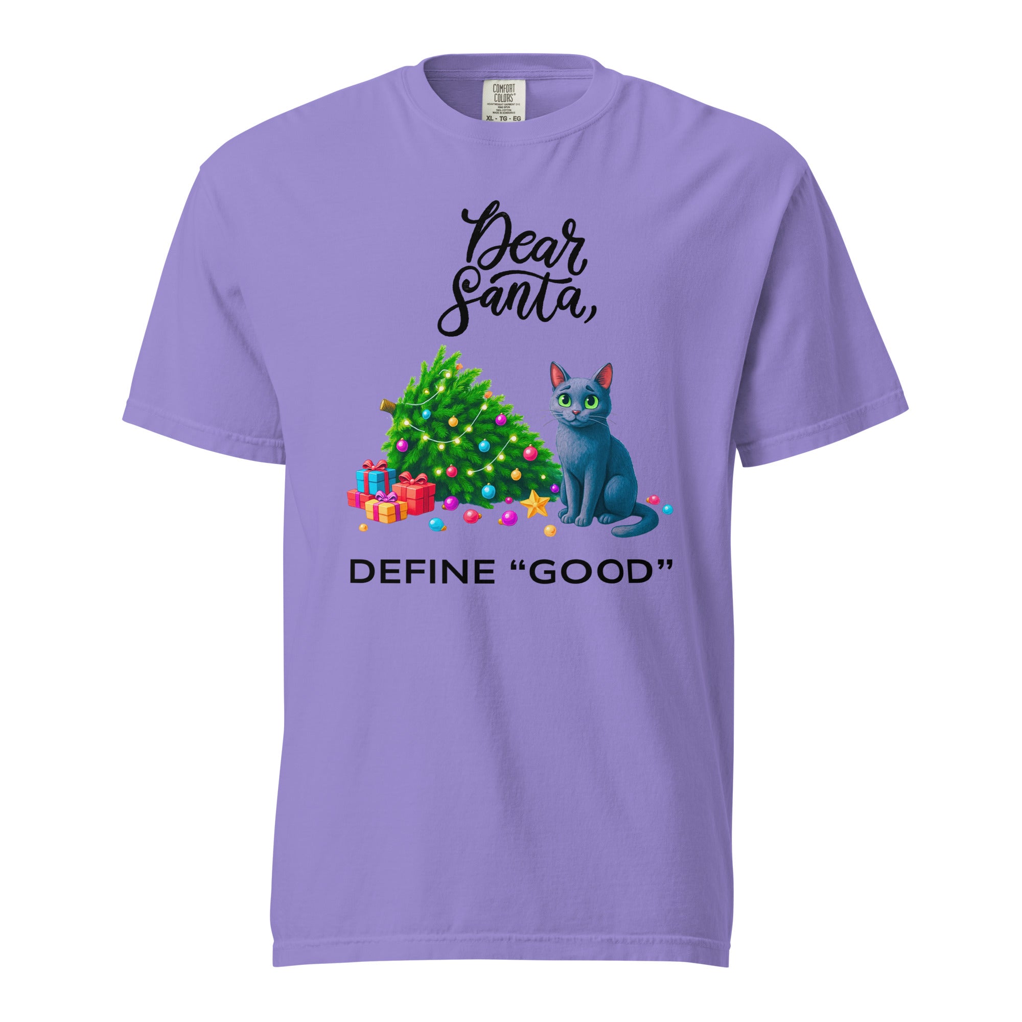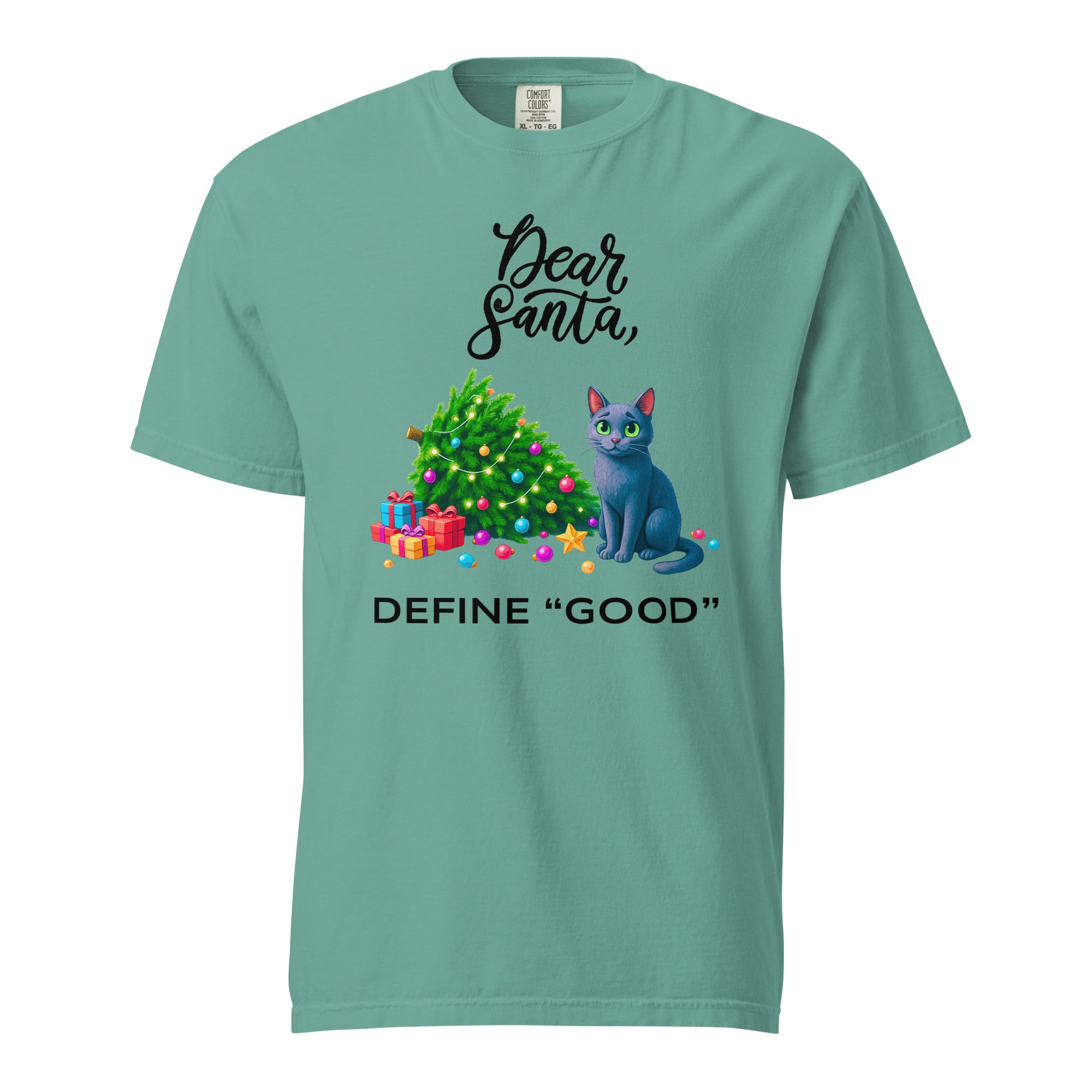 The Dear Santa tee is a witty and cozy holiday t-shirt that brings festive cheer and humor to your wardrobe. Featuring a playful design of a mischievous cat caught red-pawed beside a toppled Christmas tree, this funny Christmas shirt is perfect for parents, pet lovers, or anyone who knows they might be just one antic away from the naughty list. Bright, whimsical colors make this festive adult tee ideal for family matching shirt moments and holiday photos that stand out.