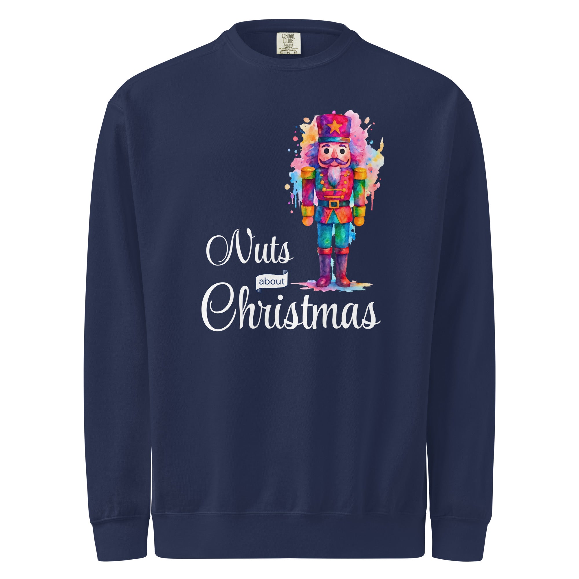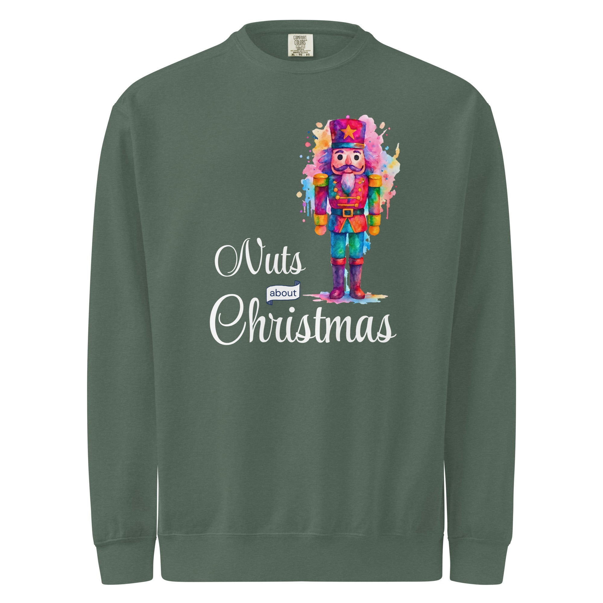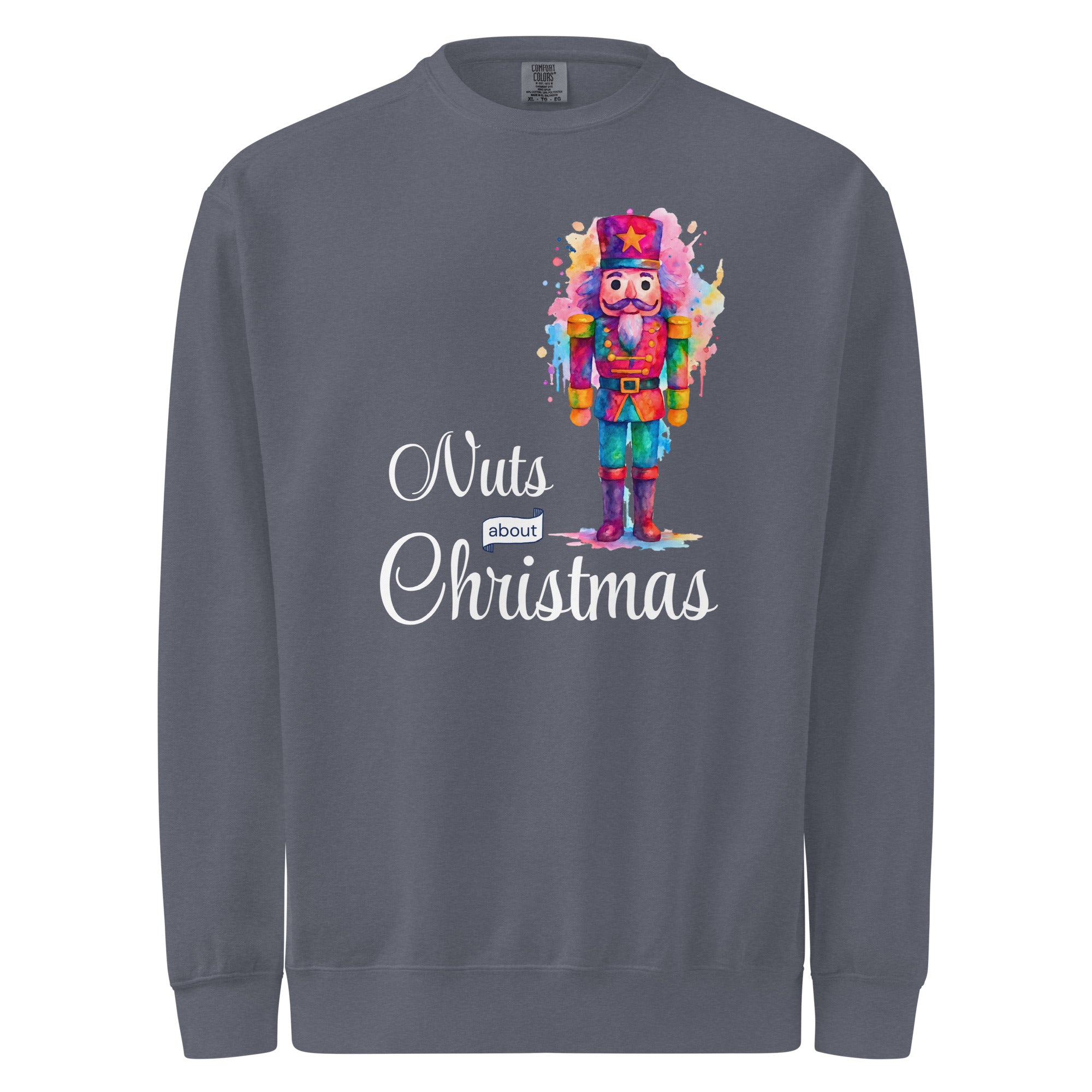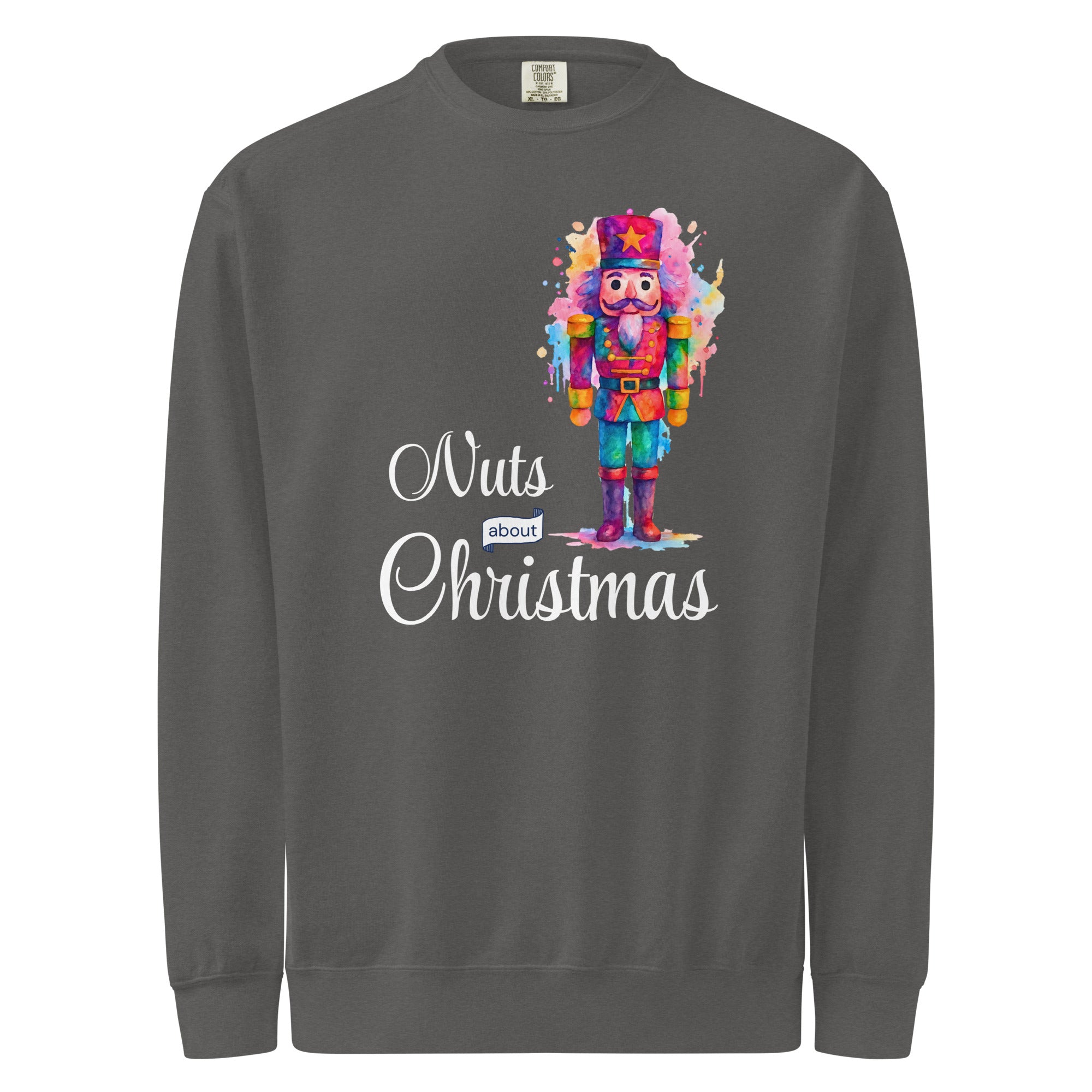 "Nuts about Christmas" Adult Unisex Cozy Vintage Washed Soft Cotton Fleece Pullover (Darks)