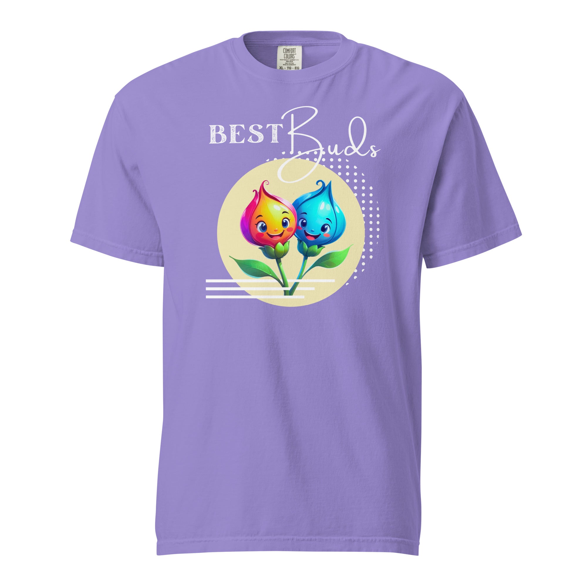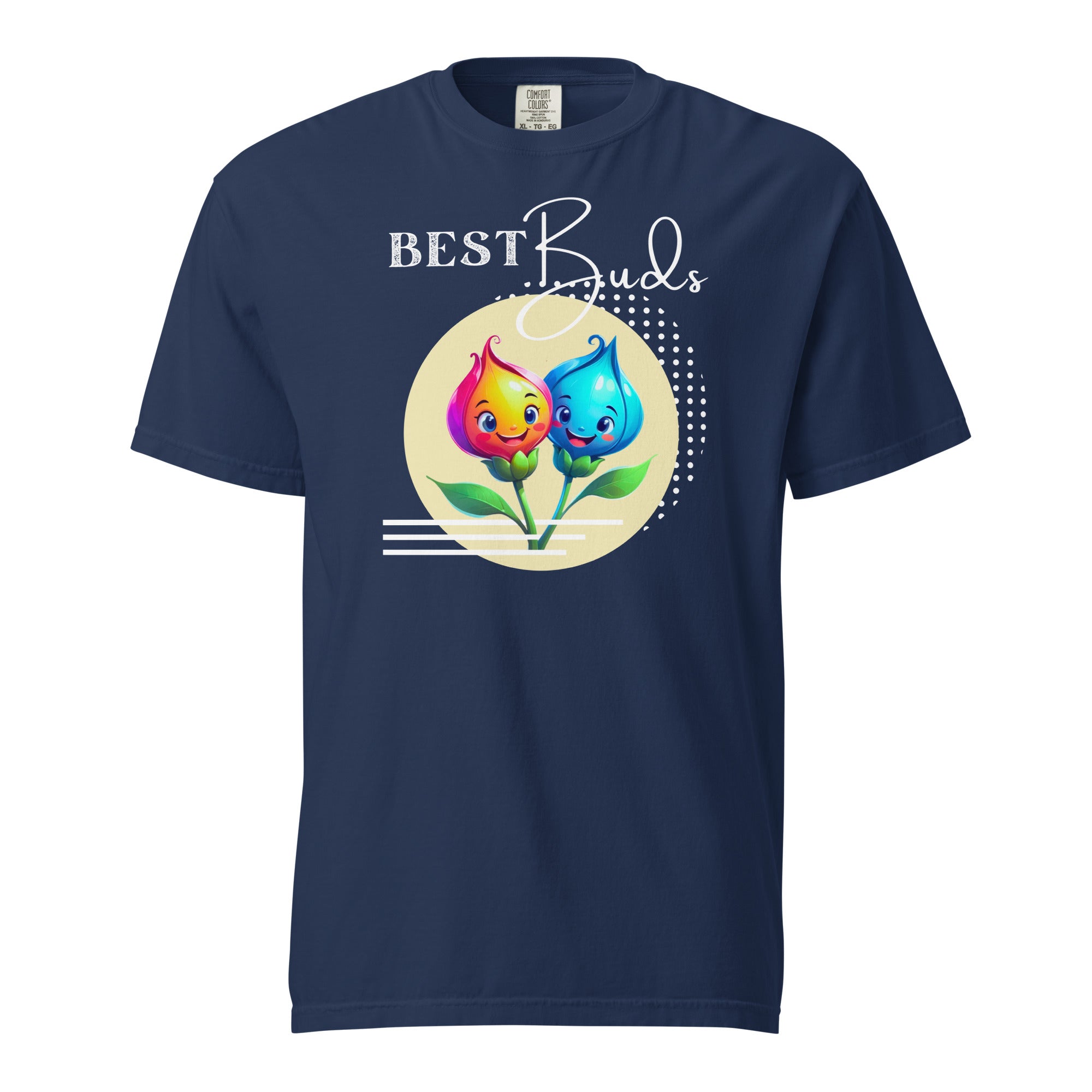 Celebrate connection with depth and personality in our Best Buds Adult Short Sleeve T-Shirt in rich, moody hues. The vibrant flower characters pop beautifully against deeper tones, creating a spring graphic tee that feels expressive, modern, and effortlessly cool. Paired with the playful “Best Buds” message, this gender-neutral design celebrates friendship, loyalty, and growing together in every season.
