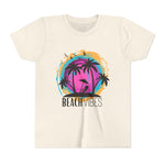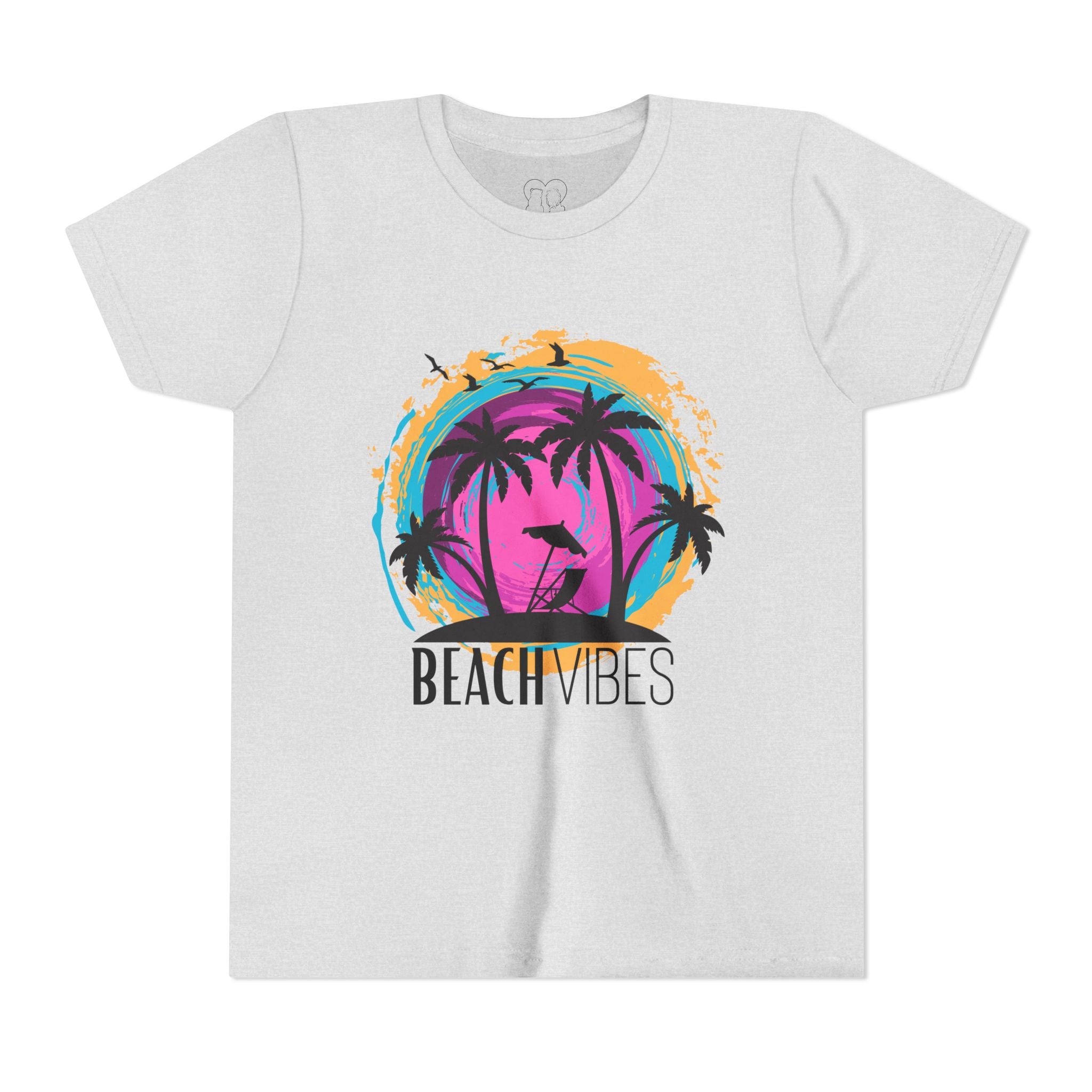Get ready for summer beach fun with our “Beach Vibes” kids' unisex short sleeve cotton tee.