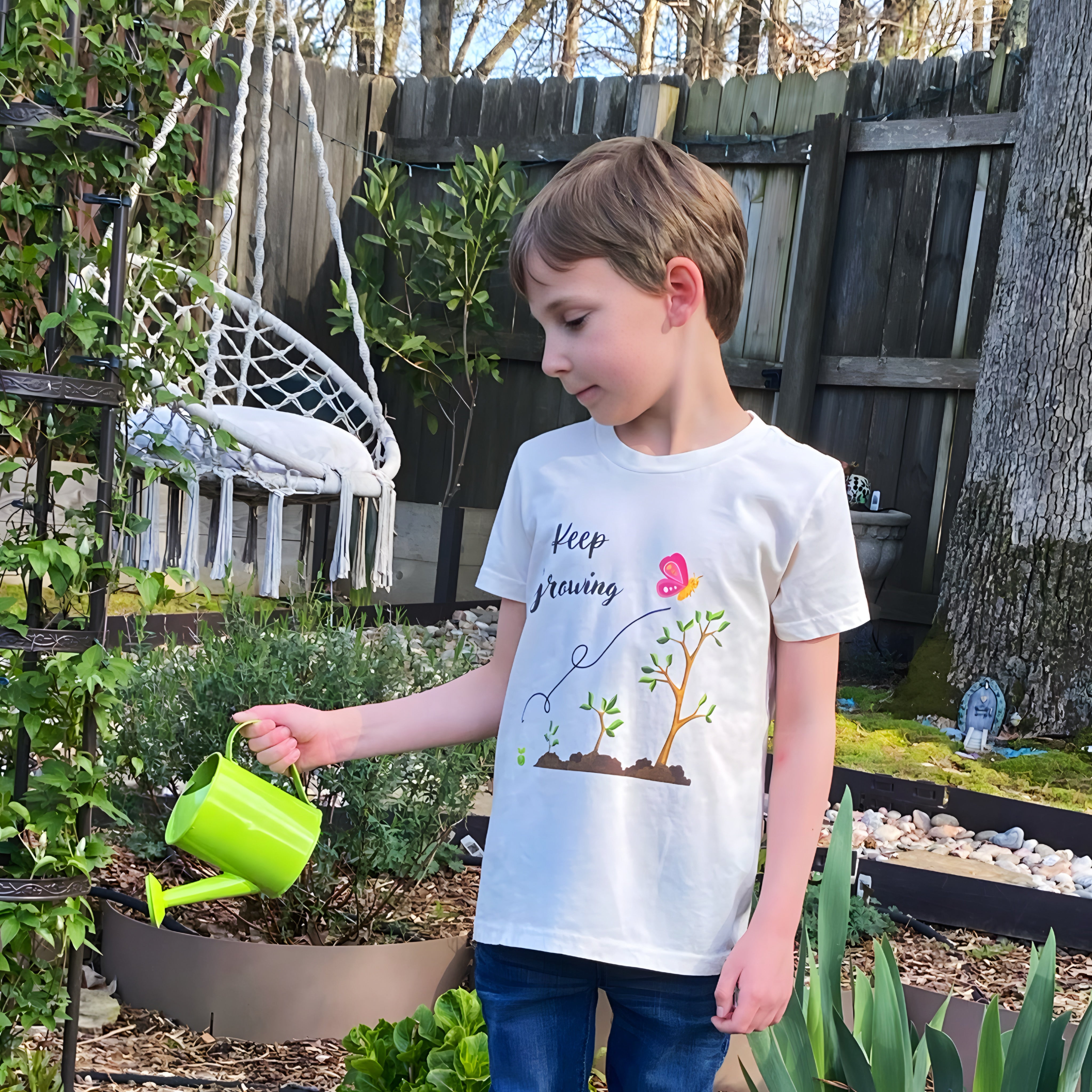 Inspire confidence and growth with our “Keep Growing” kids, unisex, short sleeve cotton tee.