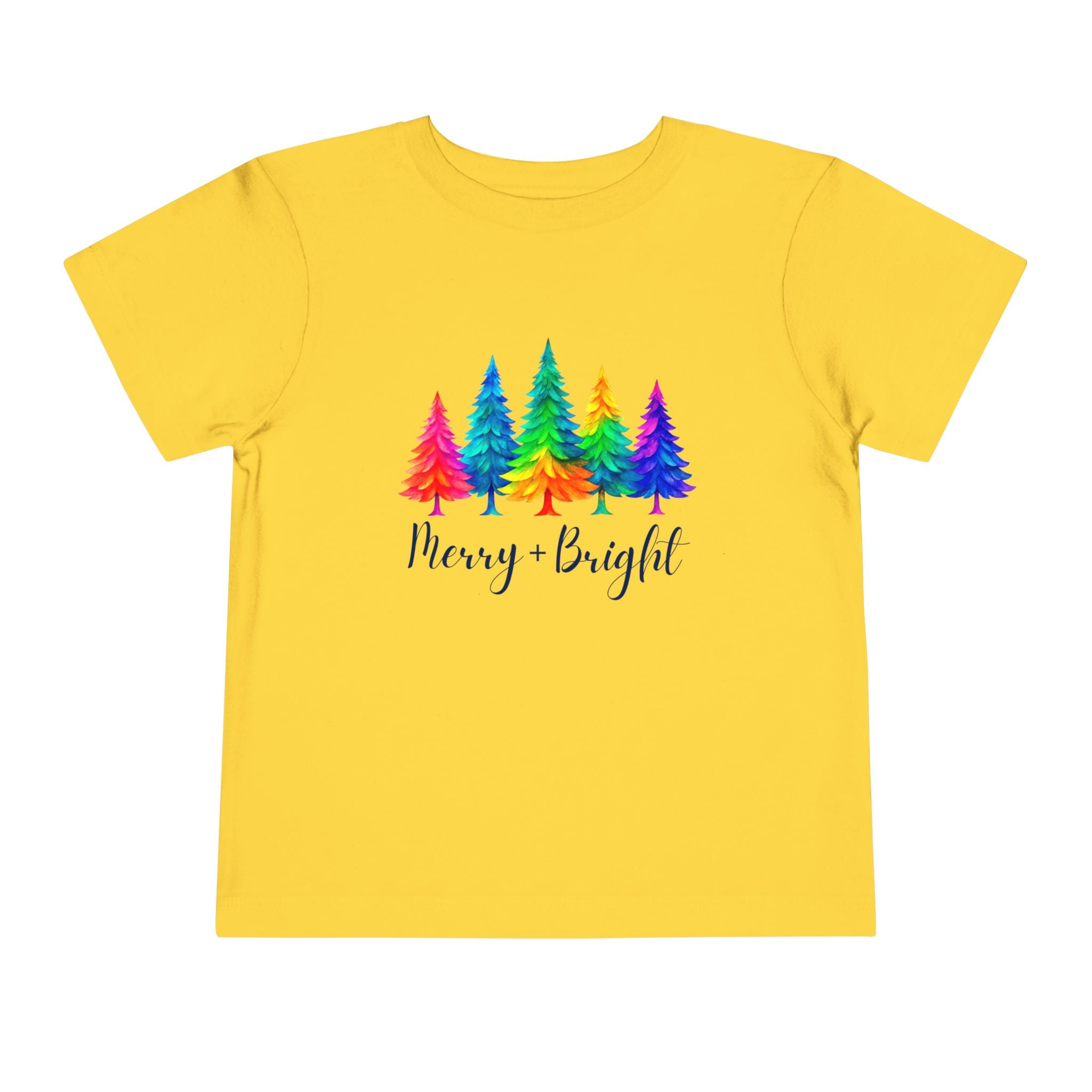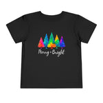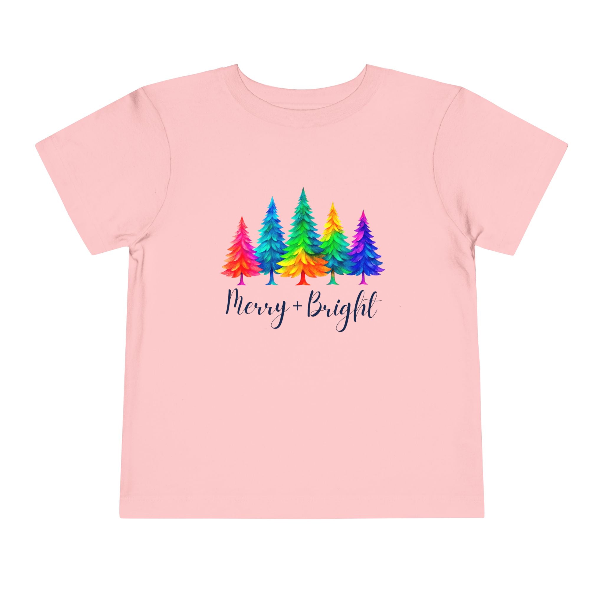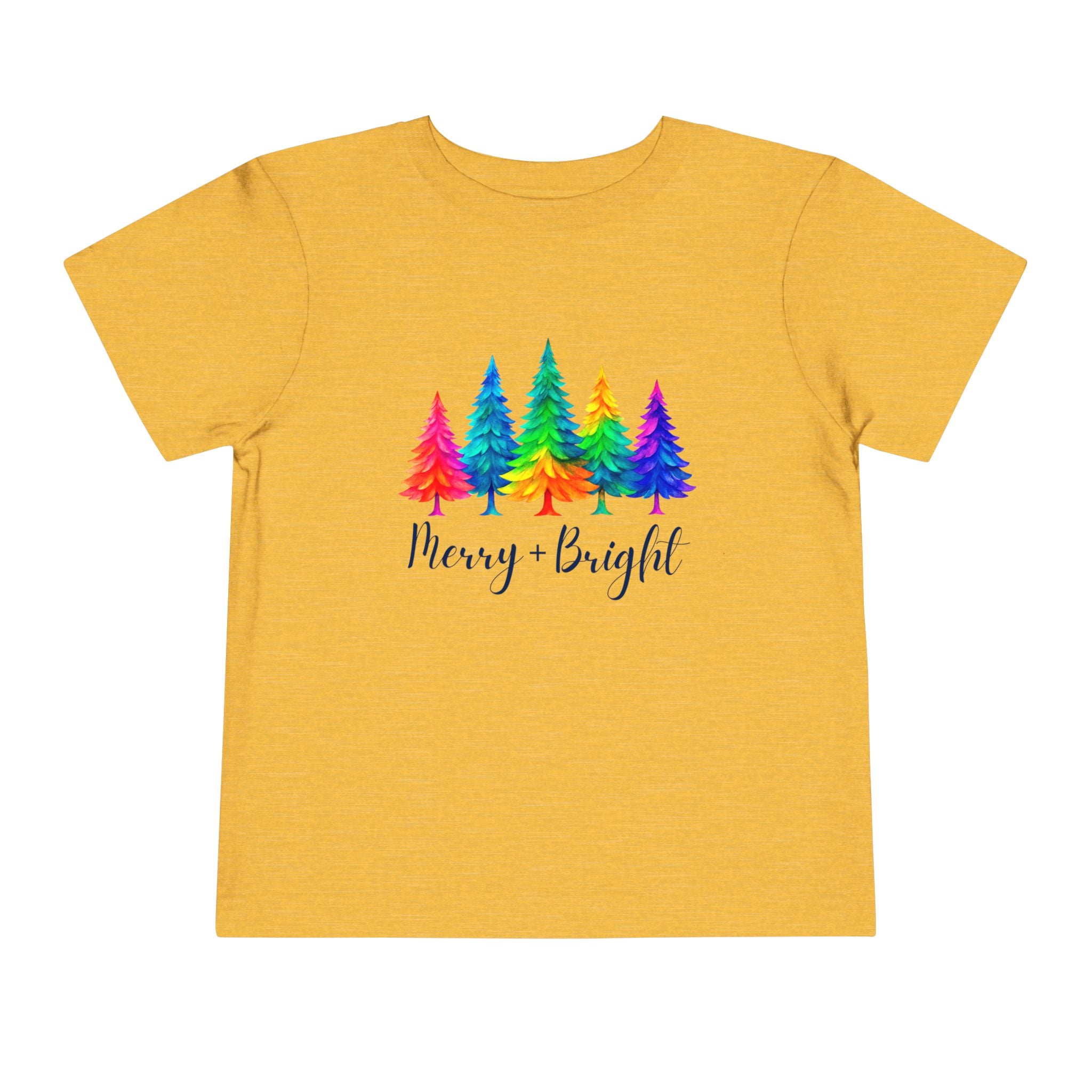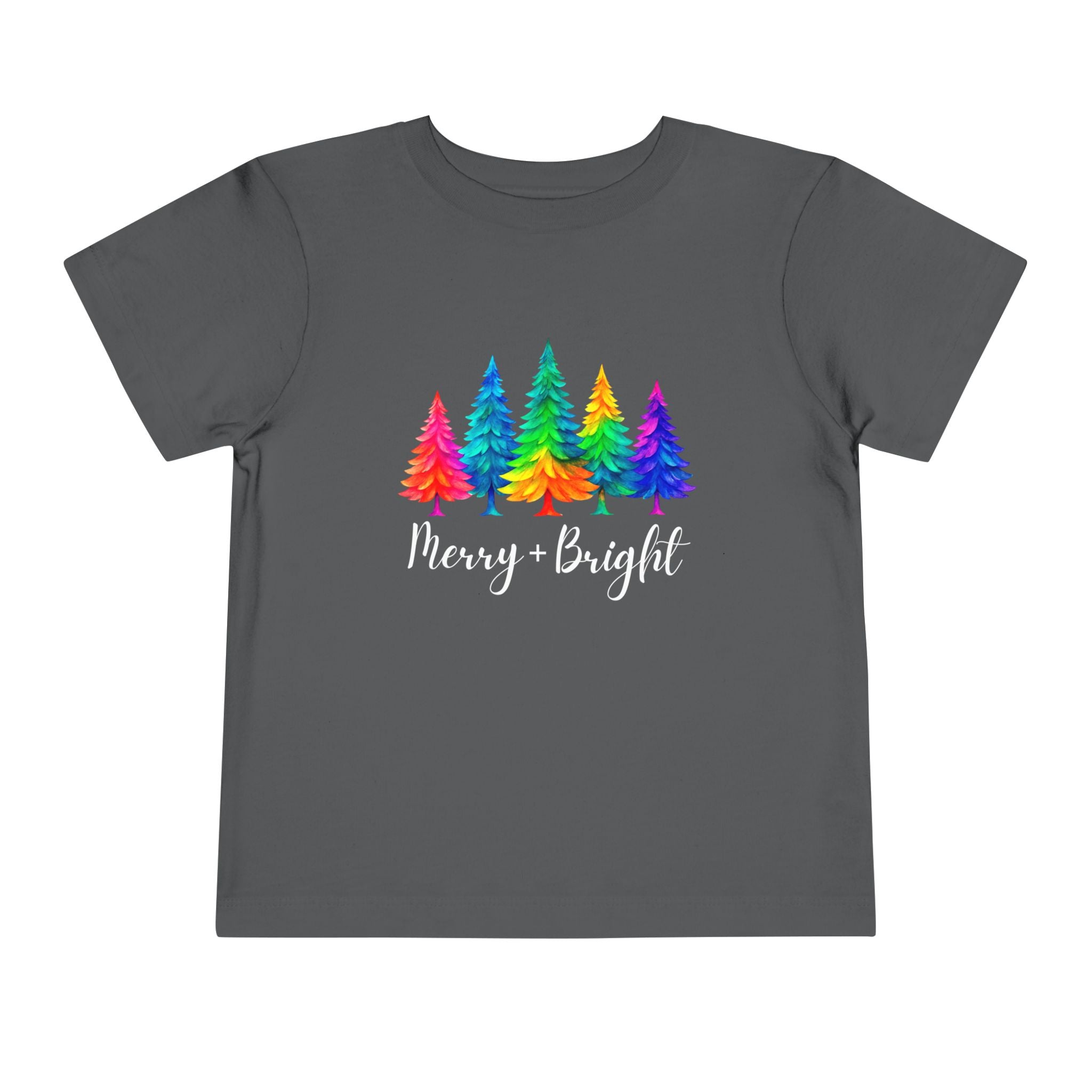 Let your little one shine in bold, colorful style with our Ursa + Leo Sassy “Merry + Bright” Toddler Short Sleeve Tee! This cheerful, gender-neutral holiday design features a rainbow forest of Christmas trees with a hand-lettered “Merry + Bright” script — a playful pop of color that lights up photos, school parties, cookie-baking days, and twinkling light parades.
