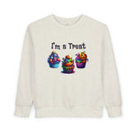 Serve up sweet and spooky style with the “I’m a Treat” Toddler Halloween Sweatshirt from the Ursa + Leo Spooky Season collection. Featuring a trio of adorably creepy monster cupcakes with candy eyes, toothy grins, and bold Halloween colors, this playful design lets your little one show off their mischievous charm with every cozy wear.