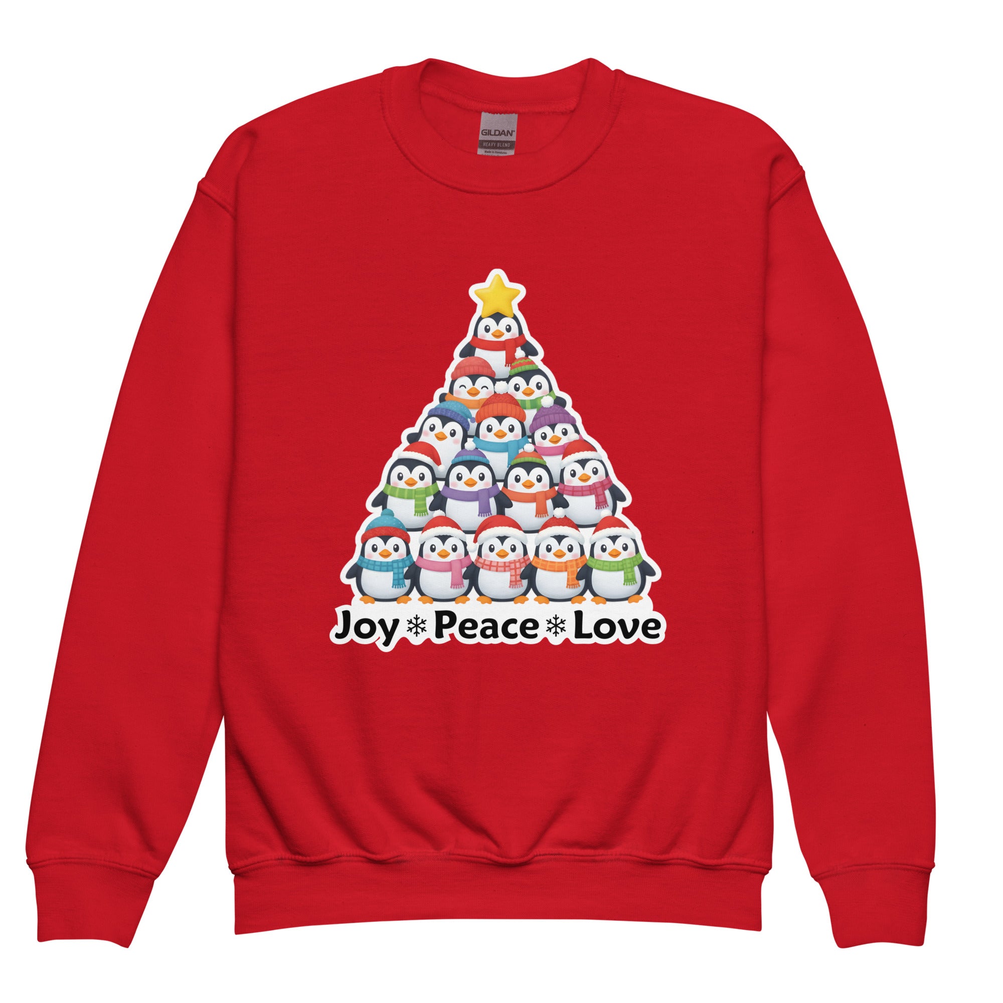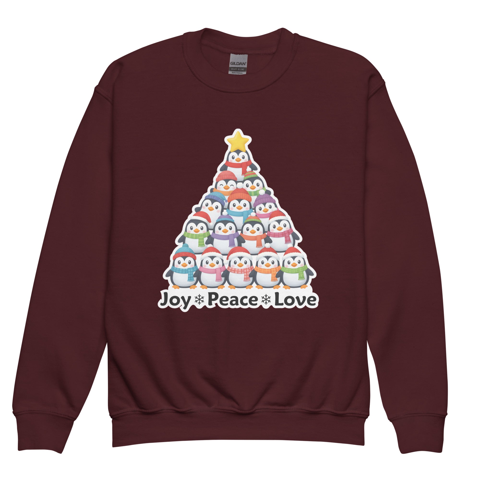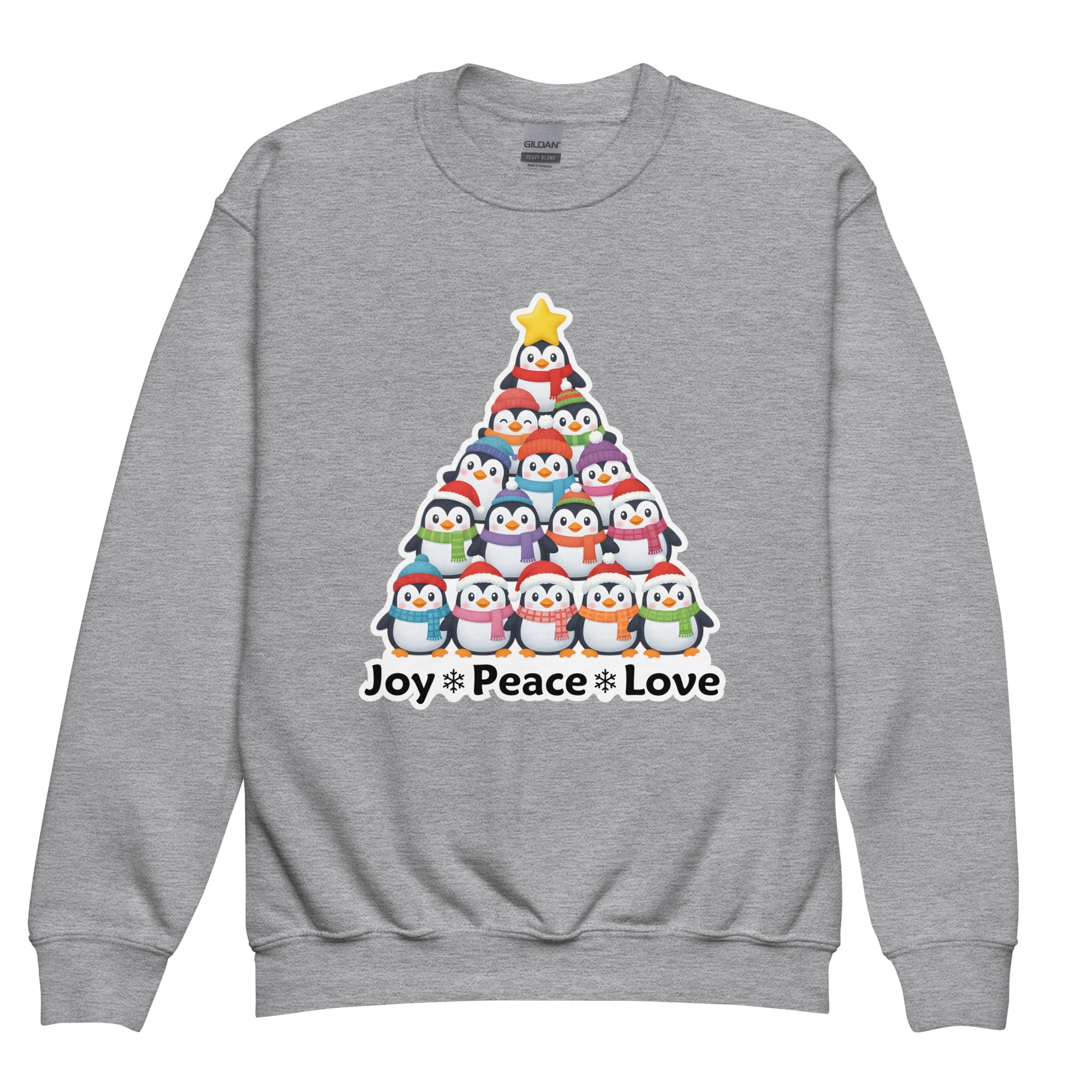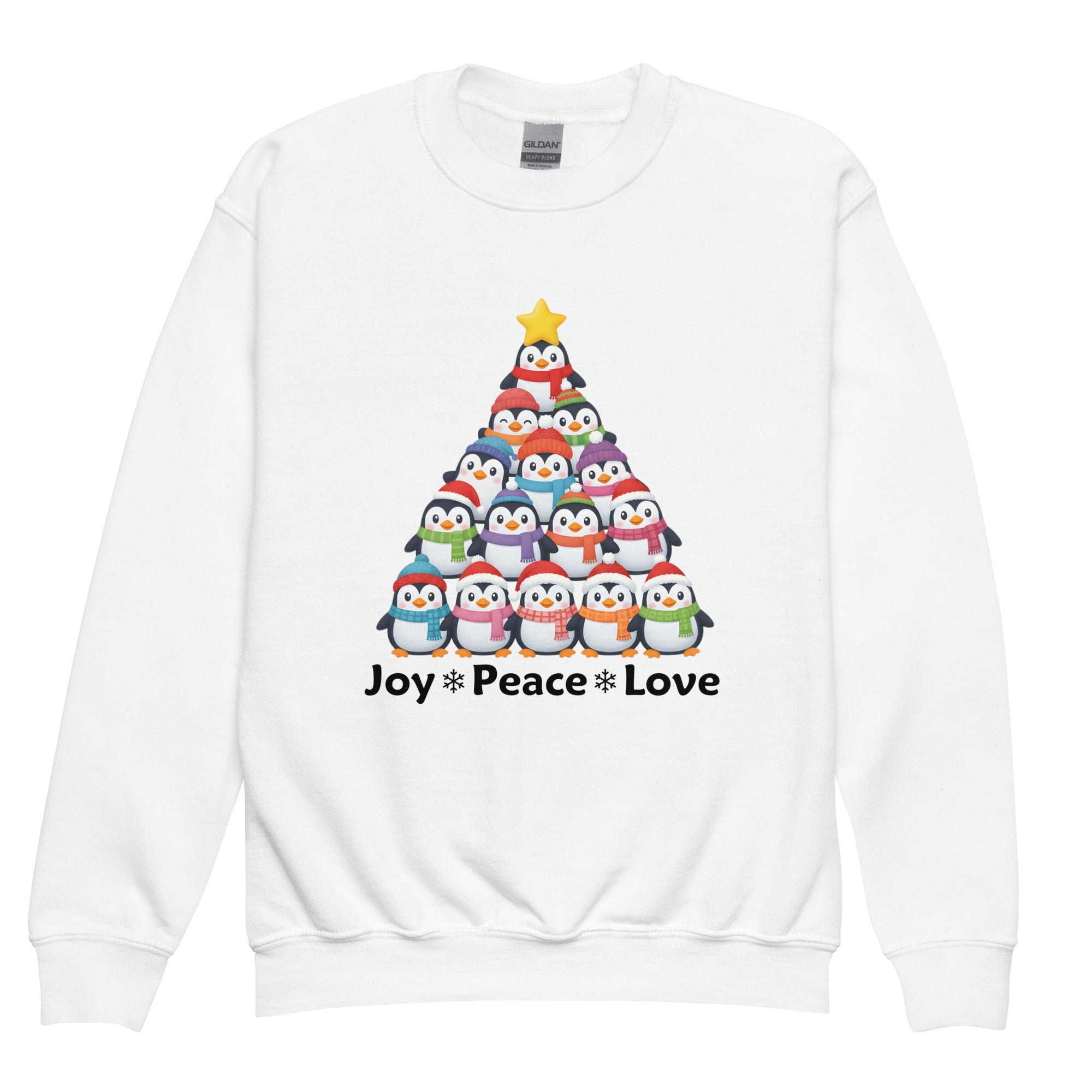 "Joy Peace Love" Kids Christmas Sweatshirt – Cozy Winter Pullover with Penguin Design