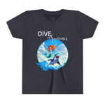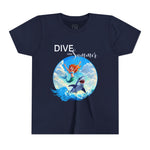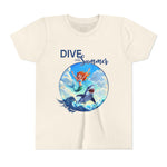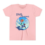 Dive into Summer with our Mermaid “Dive into Summer” kids' unisex, short sleeve cotton tee.